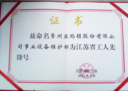 近日,我司王国祥同志被授予常州市五一劳动奖章,生产事业部下属设备维…